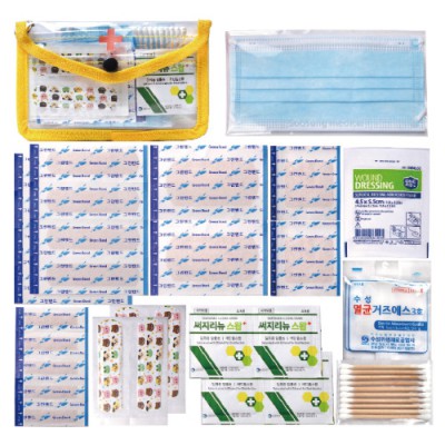 기타사항 | 표준밴드8P, 대형밴드2P, 사각밴드2P, 미니밴드5P, 칼라밴드4P, 1회용마스크, 드래싱밴드1P, 멸균거즈2P 1장, 알콜솜4P, 10P면봉 ※밴드이미지는 변경될수있음 |